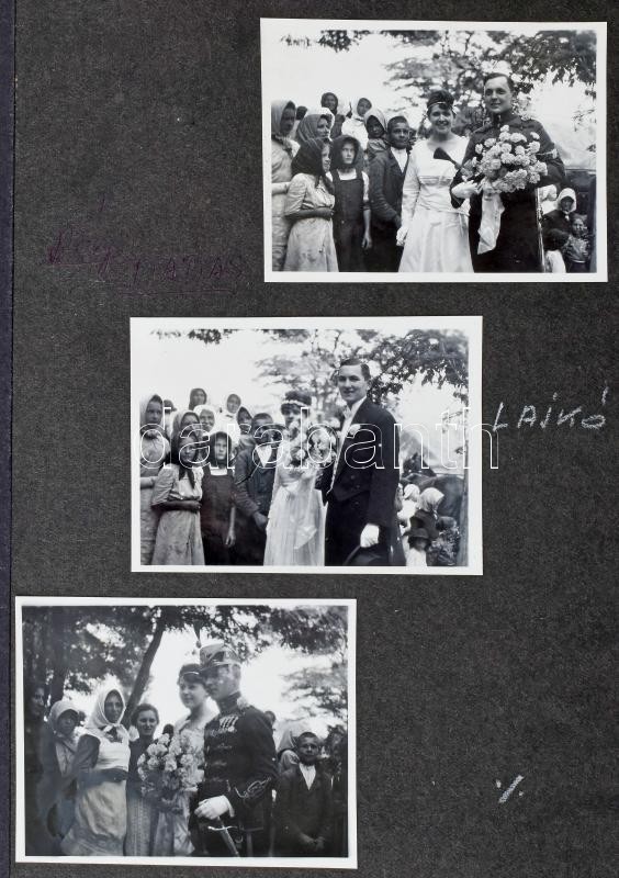 cca 1920-1950 Dinnyés Lajos (1901-1961) politikus, országgyűlési képviselő, miniszterelnök (1947-1948) családi fotóalbuma, benne régi családi, nyaralási képekkel (Dabas, Balaton, Horvátország, Olaszország), stb., összesen kb. 116