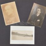 cca 1920 Családi fotóalbum, egy-két katonai portréval, biciklis fotóval, kastélypark, Tahi hajó, stb, vegyes méretben