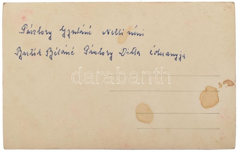 cca 1922 Pásztory Gyuláné, Bartók Béláné Pásztory Ditta (1903-1982) édesanyja, hátoldalán feliratozott fotólap, 14×9 cm<a href="https://www.darabanth.com/hu/gyorsarveres/425/kategoriak~Fotomuveszet/Foto~500022/cca-1922-Pasztory-Gyulane-Bartok-Belane