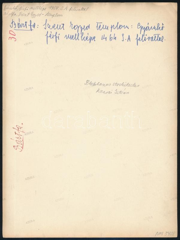 cca 1930-1940 Bártfa, Szent Egyed-templom részlet, hátoldalon feliratozott fotó, sarkán törésnyom, 23,5×17,5 cm<a href="https://www.darabanth.com/hu/gyorsarveres/426/kategoriak~Fotomuveszet/Foto~500023/cca-1930-1940-Bartfa-Szent-Egyed-templom-reszle