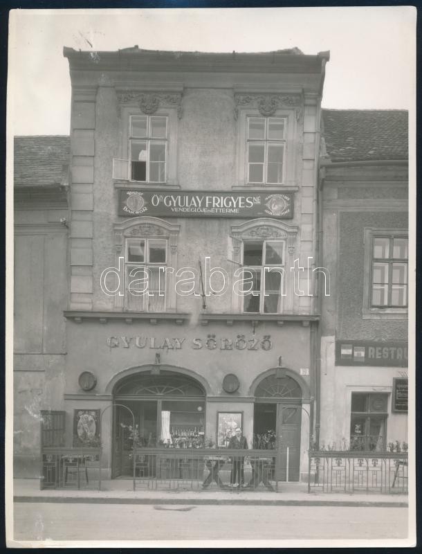 cca 1930 Kozelka Tivadar (1885-1980): Budapest, Úri utca 26., pecséttel jelzett fotó, felülete kissé sérült, 24×18 cm<a href="https://www.darabanth.com/hu/gyorsarveres/423/kategoriak~Fotomuveszet/Foto~44/cca-1930-Kozelka-Tivadar-1885-1980-Budapest-U