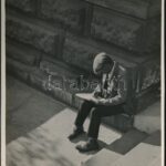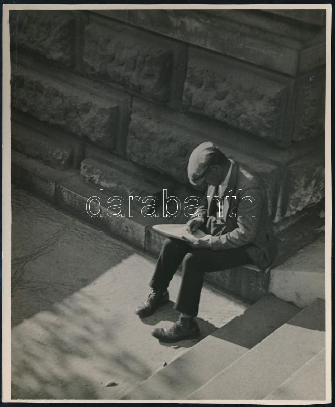 cca 1934 Kinszki Imre (1901-1945) budapesti fotóművész hagyatékából, pecséttel jelzett vintage fotóművészeti alkotás (Újságolvasó), 15,3×12,8 cm<a href="https://www.darabanth.com/hu/gyorsarveres/423/kategoriak~Fotomuveszet/Foto~44/cca-1934-Kinszki-I