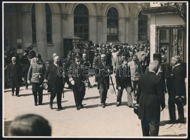cca 1935 Horthy Miklós (1868-1957) kormányzó egy rendezvényen kíséretével, Czvek Gula, MFI fotó, 17×23 cm