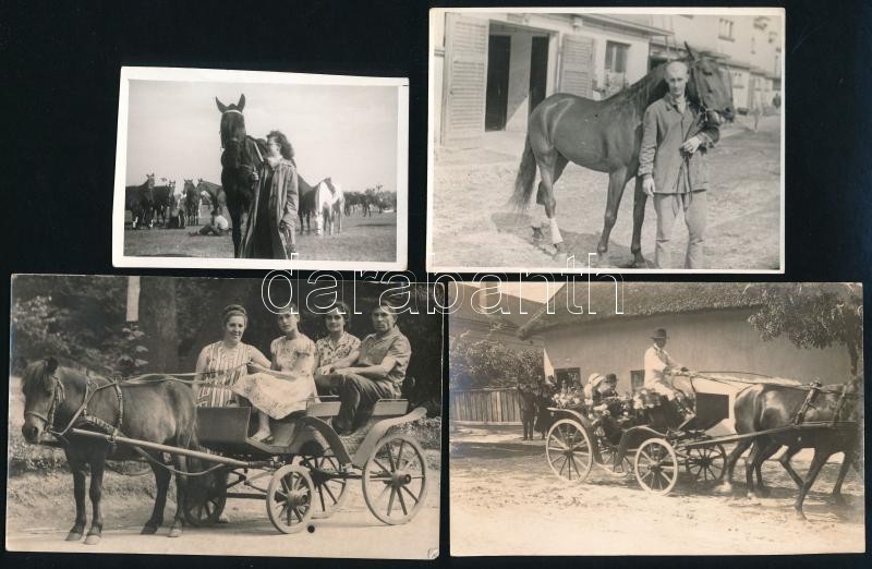 cca 1940-1960 4 db lovakat, lovaskocsikat ábrázoló fotó, 9×6 cm és 14×9 cm között<a href="https://www.darabanth.com/hu/gyorsarveres/423/kategoriak~Fotomuveszet/Foto~44/cca-1940-1960-4-db-lovakat-lovaskocsikat-abrazolo-foto-9×6-cm-es-14×9-cm-kozott~I