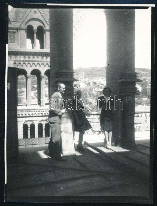 cca 1940-50 Martyn Ferenc (1899-1986) festőművész, Seiber Mária, Keresztury Dezső (1904-1995) író, költő első felesége Pécsett a székesegyháznál egy beazonosítandó hölgy társaságában. Későbbi előhívás, hátoldalán