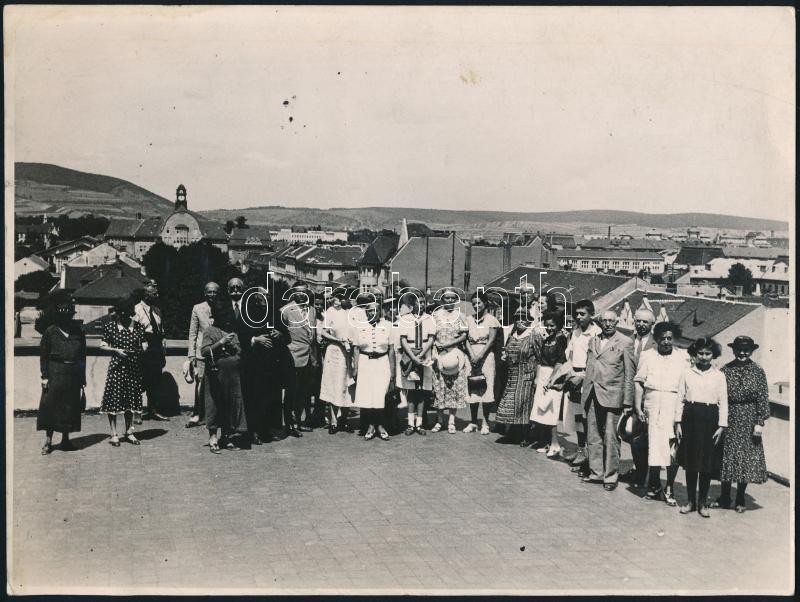 cca 1940 Kassa, csoportkép tetőteraszon, háttérben a Városháza, fotó, 17,5×23,5 cm<a href="https://www.darabanth.com/hu/gyorsarveres/423/kategoriak~Fotomuveszet/Foto~44/cca-1940-Kassa-csoportkep-tetoteraszon-hatterben-a-Varoshaza-foto-17-5C39723-5-c