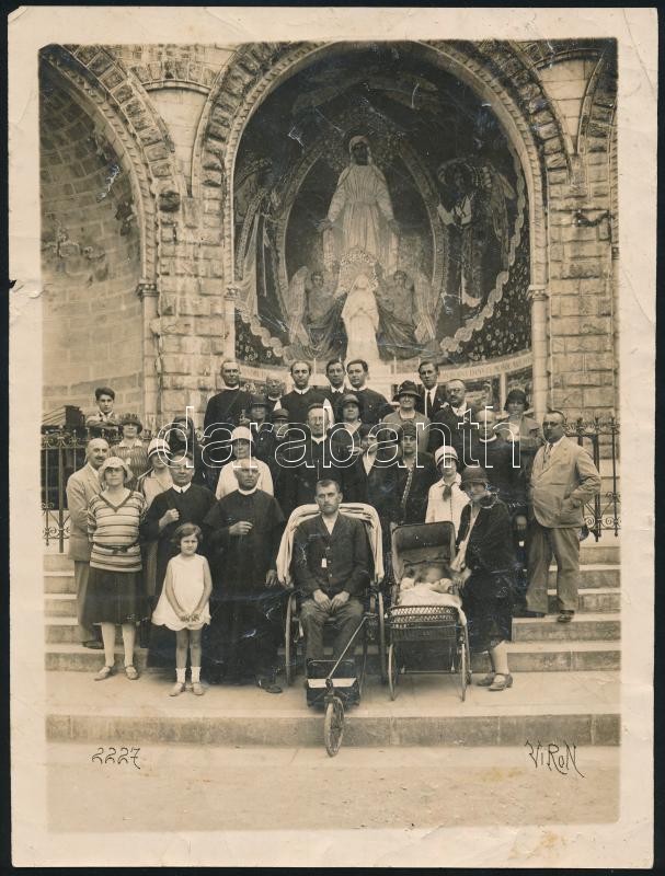 cca 1940 Zarándoklaton készült fotó Viron jelzéssel, hátoldalán aláírásokkal, sérülésekkel 22×28 cm<a href="https://www.darabanth.com/hu/gyorsarveres/423/kategoriak~Fotomuveszet/Foto~44/cca-1940-Zarandoklaton-keszult-foto-Viron-jelzessel-hatoldalan-