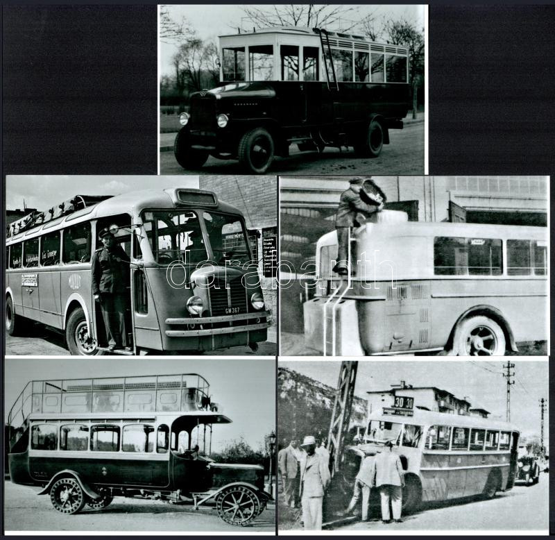 cca 1960 előtt készült felvételek autóbuszokról (külső-belső képek, karambolos, emeletes, távolsági, városi, városnéző, fagázzal üzemelő, stb.), 13 db modern nagyítás a néhai Lapkiadó Vállalat központi fotólaborjának