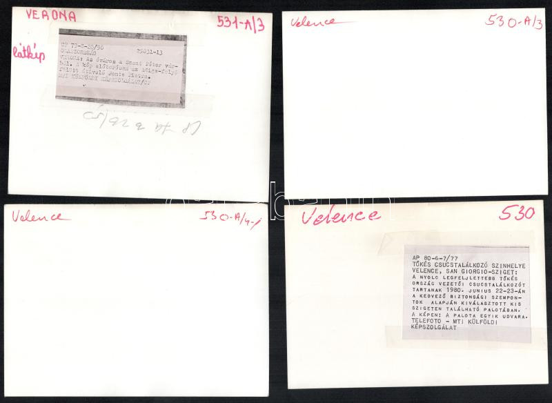 cca 1960 Velence és Verona, 12 db feliratozott sajtófotó / Venice, Verona, 12 press photos, 16×14 cm<a href="https://www.darabanth.com/hu/gyorsarveres/439/kategoriak~Fotomuveszet/Foto~1000023/cca-1960-Velence-es-Verona-12-db-feliratozott-sajtofoto-V