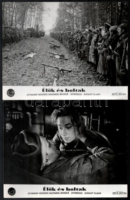 cca 1964 ,,Élők és holtak’ című szovjet film jelenetei és szereplői, 17 db vintage produkciós filmfotó, ezüst zselatinos fotópapíron, a használatból eredő (esetleges) kisebb hibákkal, 18×24 cm<a href="https://www.darabanth.com/hu/gyorsarveres/427/ka