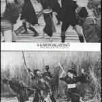 16220. tétel:cca 1989 előtt készült, "Kár a benzinért" című magyar film jelenetei és szereplői, 26 db vintage produkciós filmfotó (vitrinfotó, lobbyfotó) ezüst zselatinos fotópapíron, a használatból eredő (esetleges) kisebb hibákkal, + hozzáadva egy szöveges kisplakát, 24x30 cm