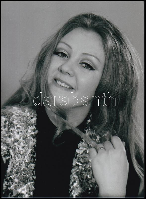 cca 1971 Halász Judit színésznő műtermi felvétele, vintage negatívról készült modern nagyítás, 21×15 cm<a href="https://www.darabanth.com/hu/gyorsarveres/438/kategoriak~Mutargy-papirregiseg-egyeb/Foto~500023/cca-1971-Halasz-Judit-szineszno-mutermi-f