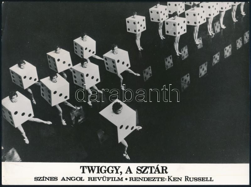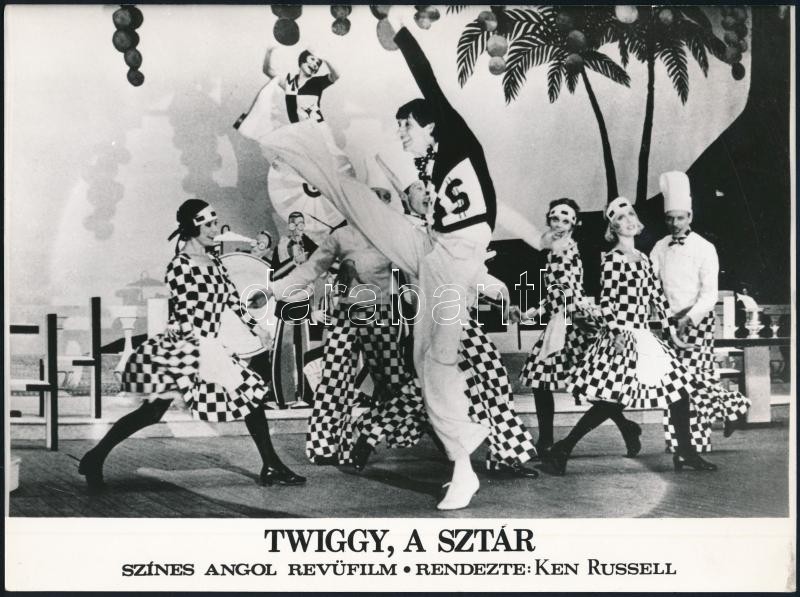 cca 1971 ,,Twiggy, a sztár’ című angol revüfilm jelenetei, 4 db vintage produkciós filmfotó, ezüst zselatinos fotópapíron, 18×24 cm<a href="https://www.darabanth.com/hu/gyorsarveres/423/kategoriak~Fotomuveszet/Foto~44/cca-1971-Twiggy-a-sztar-cimu-an