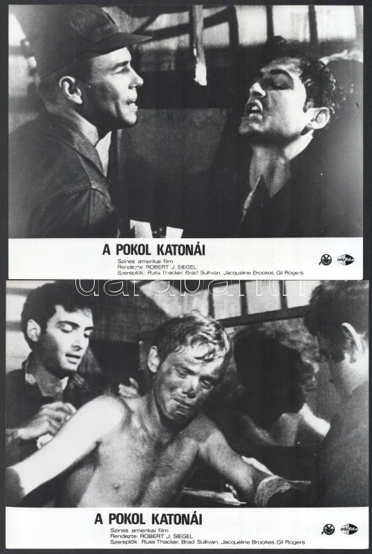 cca 1972 ,,A pokol katonái’ című amerikai film jelenetei és szereplői, 9 db vintage produkciós filmfotó, ezüst zselatinos fotópapíron, a használatból eredő (esetleges) kisebb hibákkal, 18×24 cm<a href="https://www.darabanth.com/hu/gyorsarveres/426/k