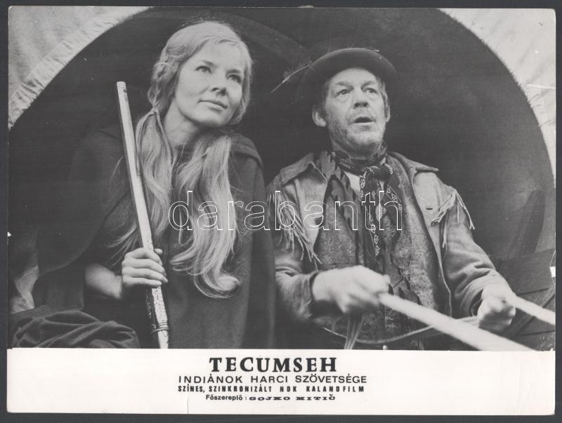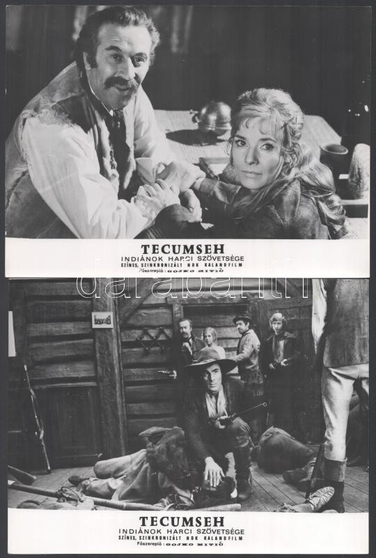 cca 1972 ,,Tecumseh – indiánok harci szövetsége’ című NDK film jelenetei és szereplői (köztük Gojko Mitic), 7 db vintage produkciós filmfotó, ezüst zselatinos fotópapíron, a használatból eredő (esetleges) kisebb hibákkal, 18×24 cm<a href="https://ww