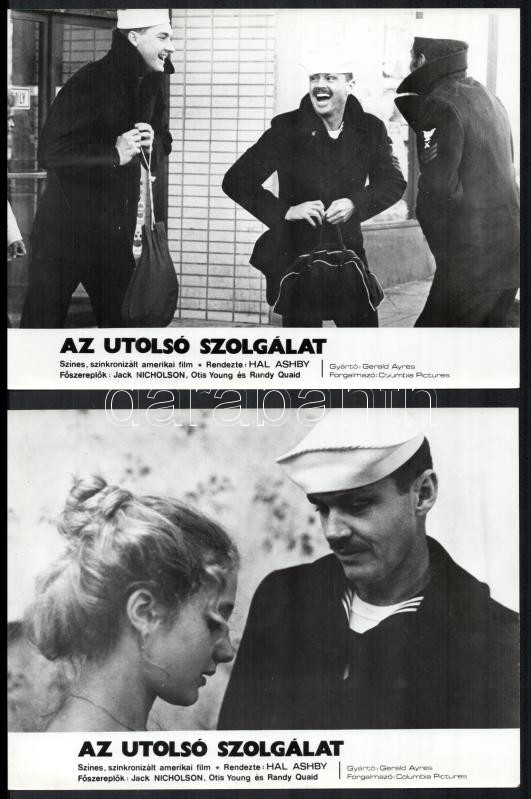 cca 1973 ,,Az utolsó szolgálat’ című amerikai film jelenetei és szereplői, 6 db vintage produkciós filmfotó ezüst zselatinos fotópapíron, a használatból eredő (esetleges) kisebb hibákkal, 18×24 cm<a href="https://www.darabanth.com/hu/nagyaukcio/40/k