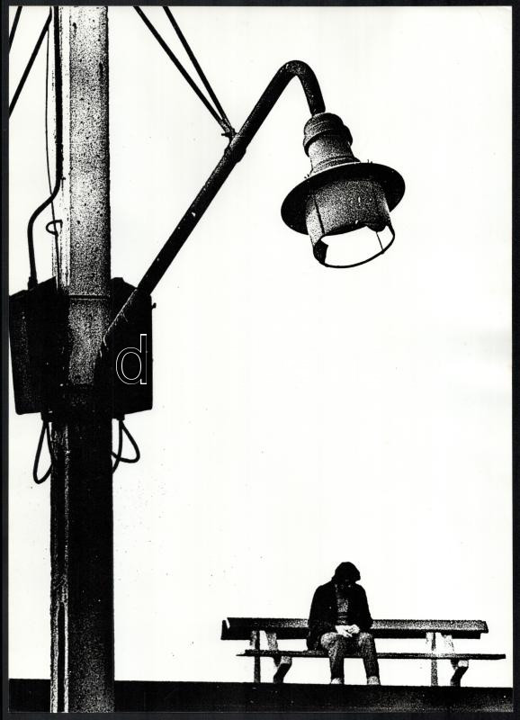 cca 1977 Magyar Alfréd jelzés nélküli vintage fotóművészeti alkotása (padon ülve), ezüst zselatinos fotópapíron, sarkán törésvonal, 38,5×27,5 cm<a href="https://www.darabanth.com/hu/nagyaukcio/40/kategoriak~Mutargy-szobor-papirregiseg/Foto~16771/cca