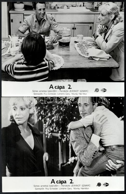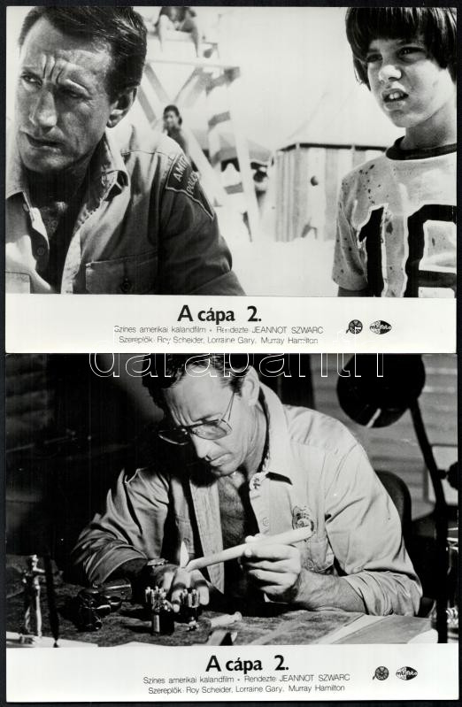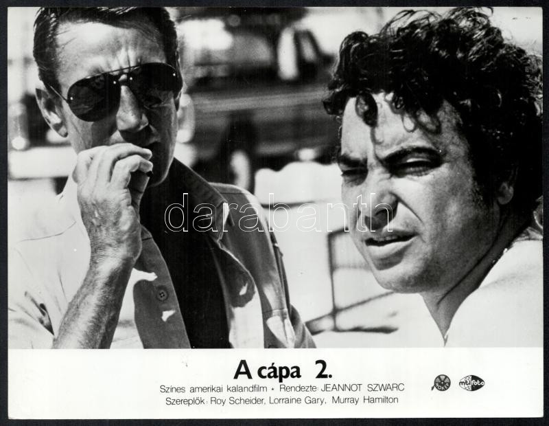 cca 1978 ,,A cápa 2.’ című amerikai kalandfilm jelenetei és szereplői, 7 db vintage produkciós filmfotó, ezüst zselatinos fotópapíron, a használatból eredő (esetleges) kisebb hibákkal, 18×24 cm<a href="https://www.darabanth.com/hu/gyorsarveres/438/k