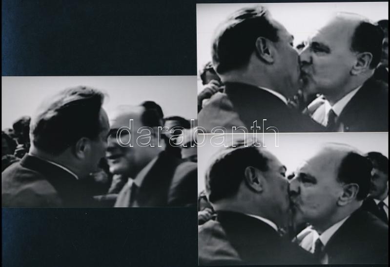cca 1979 Brezsnyev és Kádár János csókja, 3 db mai nagyítás, 10×15 cm<a href="https://www.darabanth.com/hu/gyorsarveres/423/kategoriak~Fotomuveszet/Foto~44/cca-1979-Brezsnyev-es-Kadar-Janos-csokja-3-db-mai-nagyitas-10×15-cm~II2686705/?utm_source=aff
