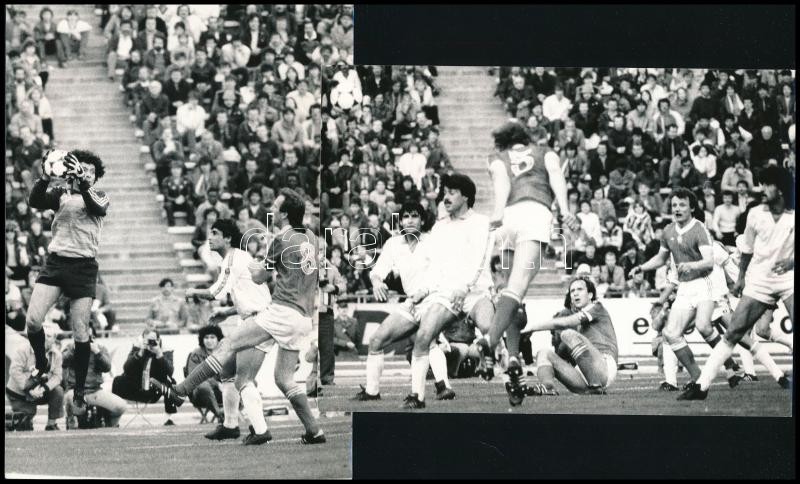 cca 1980 Labdarúgó mérkőzés, 2 db sajtófotó, László Sándor felvétele, hátoldalán pecséttel jelzett, 13×18 cm<a href="https://www.darabanth.com/hu/gyorsarveres/423/kategoriak~Fotomuveszet/Foto~44/cca-1980-Labdarugo-merkozes-2-db-sajtofoto-Laszlo-Sand