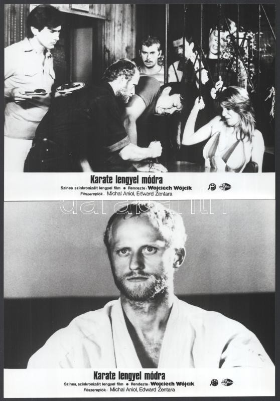 cca 1983 ,,Karate lengyel módra’ című lengyel film jelenetei és szereplői, 6 db vintage produkciós filmfotó, ezüst zselatinos fotópapíron, a használatból eredő (esetleges) kisebb hibákkal, 18×24 cm<a href="https://www.darabanth.com/hu/gyorsarveres/4