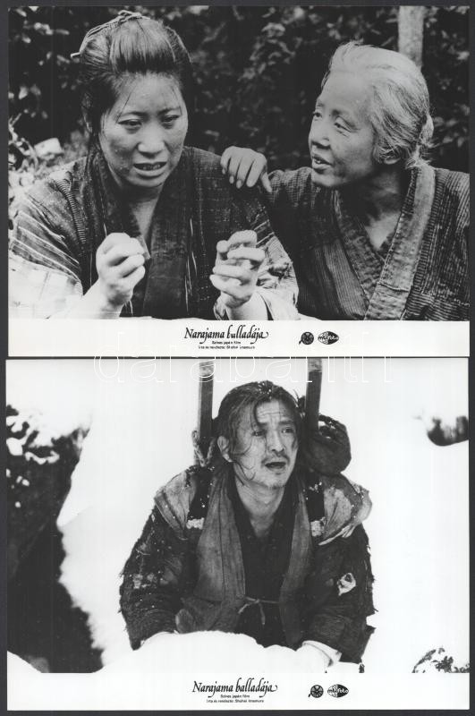 cca 1983 ,,Narajama balladája’ című japán film jelenetei és szereplői, 6 db vintage produkciós filmfotó, ezüst zselatinos fotópapíron, a használatból eredő (esetleges) kisebb hibákkal, 18×24 cm<a href="https://www.darabanth.com/hu/gyorsarveres/423/k