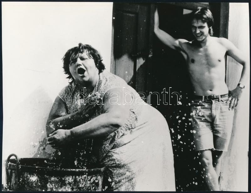 16218. tétel:cca 1989 előtt készült, "Az örökös" című magyar film jelenetei és szereplői, 43 db vintage produkciós filmfotó (vitrinfotó, lobbyfotó) ezüst zselatinos fotópapíron, a használatból eredő (esetleges) kisebb hibákkal, 24x30 cm