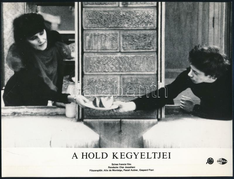 cca 1984 ,,A Hold kegyeltjei’ című francia film jelenetei és szereplői, 5 db vintage produkciós filmfotó, ezüst zselatinos fotópapíron, a használatból eredő (esetleges) kisebb hibákkal, 18×24 cm<a href="https://www.darabanth.com/hu/gyorsarveres/423/