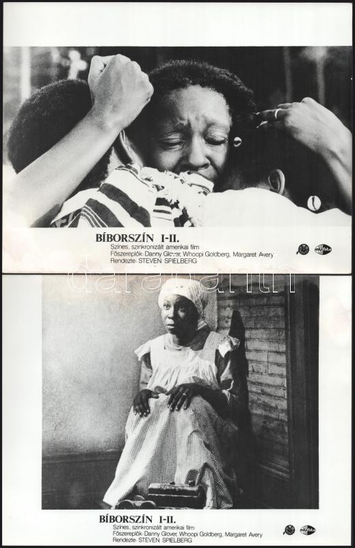 cca 1985 Steven Spielberg ,,Bíborszín” című amerikai filmjének jelenetei és szereplői, 9 db vintage produkciós filmfotó ezüst zselatinos fotópapíron, a használatból eredő (esetleges) kisebb hibákkal, 18×24 cm