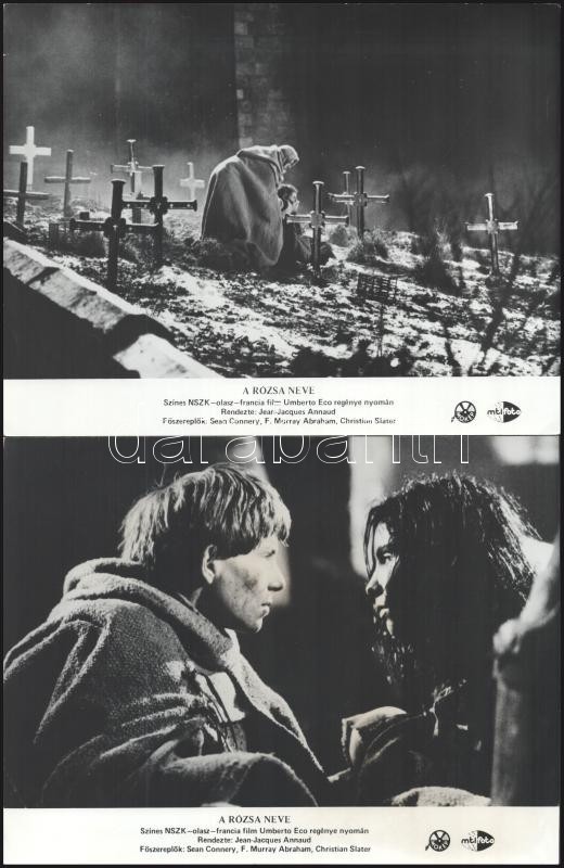 cca 1986 ,,A rózsa neve” című olasz – francia film jelenetei és szereplői, 8 db vintage produkciós filmfotó ezüst zselatinos fotópapíron, a használatból eredő (esetleges) kisebb hibákkal, 18×24 cm