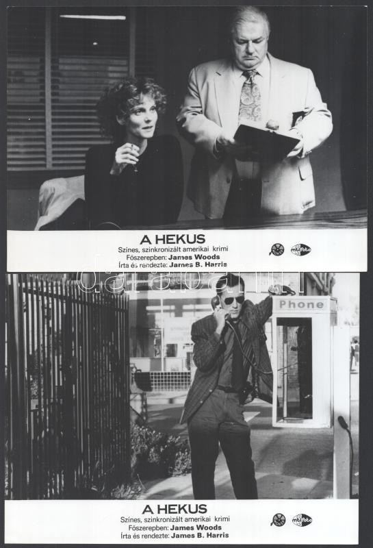 cca 1988 ,,A hekus’ című amerikai krimi jelenetei és szereplői (köztük James Woods), 6 db vintage produkciós filmfotó, ezüst zselatinos fotópapíron, a használatból eredő (esetleges) kisebb hibákkal, 18×24 cm<a href="https://www.darabanth.com/hu/gyor