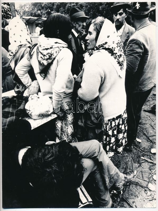 Csák Miklós (1933-2013): Cigány család a csatkai búcsúban. Jelzetlen fotó, 24×18 cm<a href="https://www.darabanth.com/hu/gyorsarveres/423/kategoriak~Fotomuveszet/Foto~44/Csak-Miklos-1933-2013-Cigany-csalad-a-csatkai-bucsuban-Jelzetlen-foto-24×18-cm~