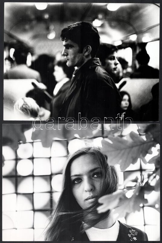 16223. tétel:cca 1989 előtt készült, "Tücsök" című magyar film jelenetei és szereplői, 13 db vintage produkciós filmfotó (vitrinfotó, lobbyfotó) ezüst zselatinos fotópapíron, a használatból eredő (esetleges) kisebb hibákkal, a szövegmezők felülragasztva, + hozzáadva egy szöveges kisplakát, 24x30 cm és 18x24 cm