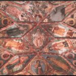 Csák Miklós (1933-2013): Régi kápolnabelső, mennyezetfreskó (Hanglemez borítóterv pályázatra). 2 db fotó, az egyik a hátoldalán feliratozva, a másik pecséttel jelzett, 30×29 cm