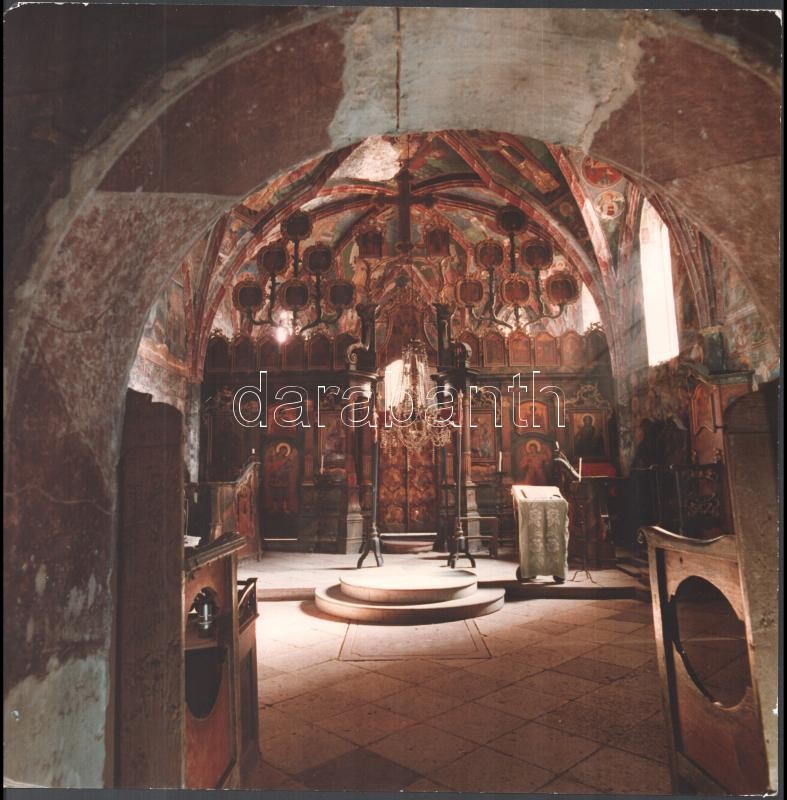 Csák Miklós (1933-2013): Régi kápolnabelső, mennyezetfreskó (Hanglemez borítóterv pályázatra). 2 db fotó, az egyik a hátoldalán feliratozva, a másik pecséttel jelzett, 30×29 cm<a href="https://www.darabanth.com/hu/gyorsarveres/423/kategoriak~Fotomuv