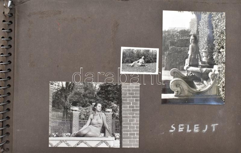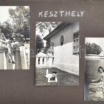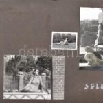 Családi fotóalbum, főként fürdőhelyeken készített életképekkel, portrékkal (Keszthely, Hévíz, Balatonföldvár, Halászbástya, stb.), vegyes méretű beragasztott fotókkal, feliratozva