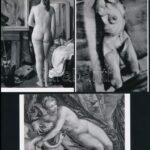 Különböző időben készített képzőművészeti alkotások fotómásolata szolidan erotikus hölgyekről, 5 db mai nagyítás Fekete György budapesti fényképész hagyatékából, 10×15 cm