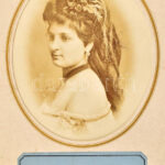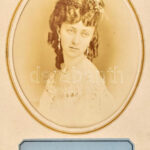 Magyar Hölgykoszorú Album 1870. (Ungarischer Damenkranz. / Réunion de Dames Hongroises.) Pest, 1870, Schrecker Ignácz fényirdája, 1 (címlap) + 19 (számozott) t. Paszpartuba foglalt, ovális alakú fotókkal (látható méret: 12,5×10,5 cm).