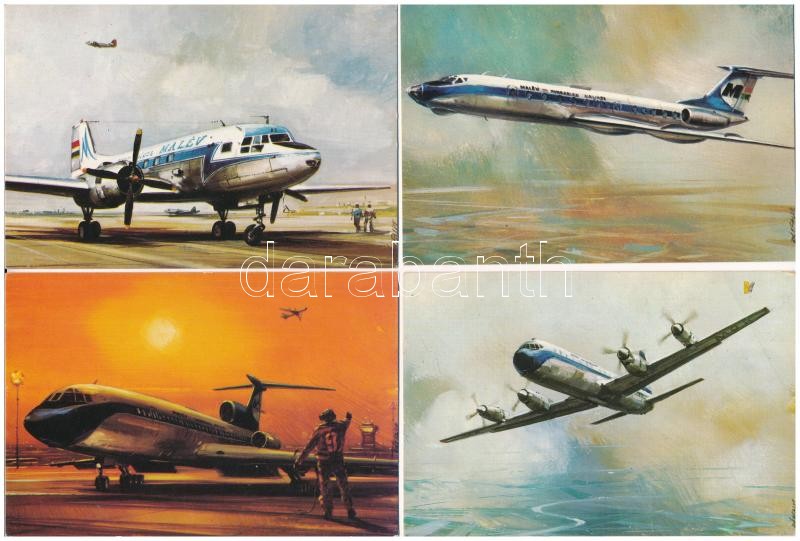17 db MODERN motívum képeslap: Malév repülőgépek / 17 modern motive postcards: Malév aircrafts<a href="https://www.darabanth.com/hu/gyorsarveres/417/kategoriak~Kepeslapok/Modern-Kepeslap-Tetelek~1500003/17-db-MODERN-motivum-kepeslap-Malev-repulogepe