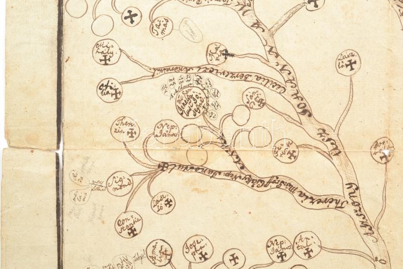 1817 jékelfalusi Jékelfalusi László családfája. Kézzel rajzolt. Kis szakadásokkal 49×42 cm<a href="https://www.darabanth.com/hu/gyorsarveres/424/kategoriak~Mutargy-papirregiseg-egyeb/Tortenelmi-dokumentumok-keziratok-erdekessegek~500019/1817-jekelfa