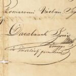 1849.IX.30 Komáromi vár, bizonyítvány az ostrom végnapjaiból az 1848-49-es szabadságharcos, komáromi várőr, árvaváraljai születésű Storch Vendel (1827-1886 után) részére. Egy beírt oldal, Kaplonyi Darabanth Ignác (1817-1875) őrnagy, a 63. zászlóalj paranc