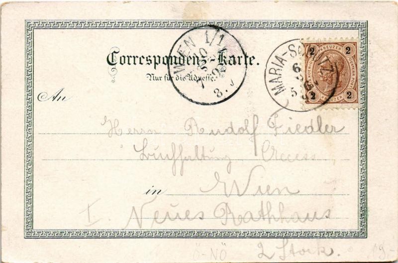 1897 (Vorläufer!) Maria Schutz bei Semmering, Mariaschutz; Hotel Bellevue, Gasthof Prasch / hotel, inn. Carl Otto Hayd Kunstverlags-Anstalt Art Nouveau, floral, litho (EK)