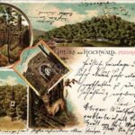 1898 (Vorläufer) Hukvaldy, Hochwald; Ruine, Burgtor / castle ruins, castle gate, deer. Art Nouveau, floral, litho (b)