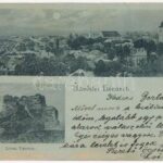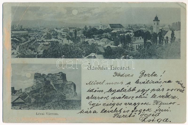 1898 (Vorläufer) Léva, Levice; várrom, látkép a zsinagógával / Levicky hrad / castle ruins, general view with synagogue (felületi sérülés / surface damage)