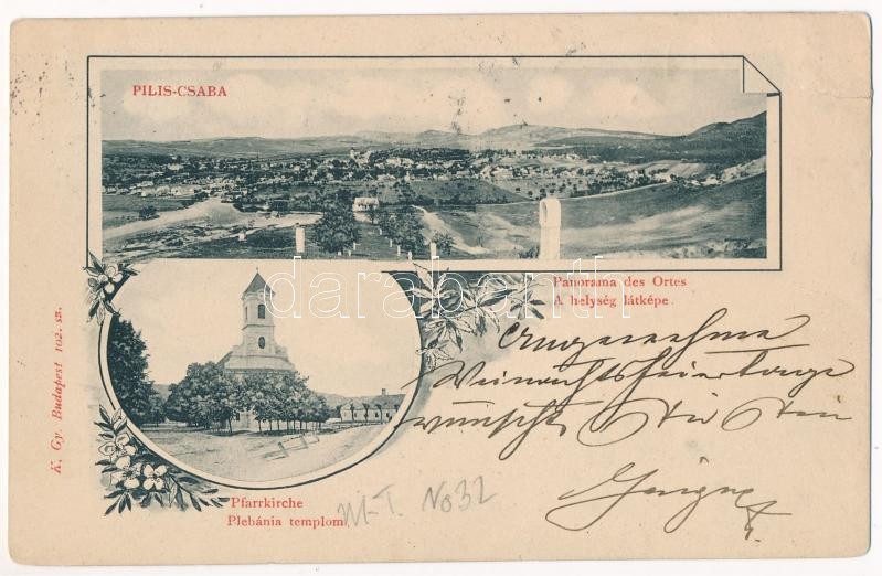 1898 (Vorläufer) Piliscsaba, látkép, Plébániatemplom. K. Gy. 102. sz. Art Nouveau, floral (b)