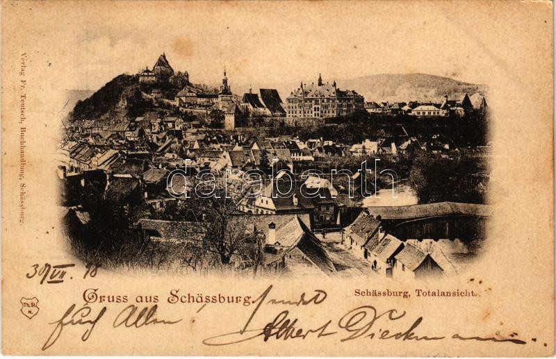 1898 (Vorläufer) Segesvár, Schässburg, Sighisoara; Totalansicht / látkép. Fr. Teutsch kiadása / general view + ‘SZÉKELY-UDVARHELY – SEGESVÁR 134. SZ.’ vasúti mozgóposta bélyegző (fl)<a href="https://www.darabanth.com/hu/gyorsarveres/420/kategoriak~K