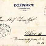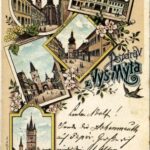 1898 (Vorläufer) Vysoké Myto, Kostel sv. Vavrince, Hotel Posta, Chocenská vez (Karaska), Litomyslská Brána, Prazská Brána / church, hotel, street view, city gates. Lit. Th. Böhm. Art Nouveau, floral, litho (worn corners)