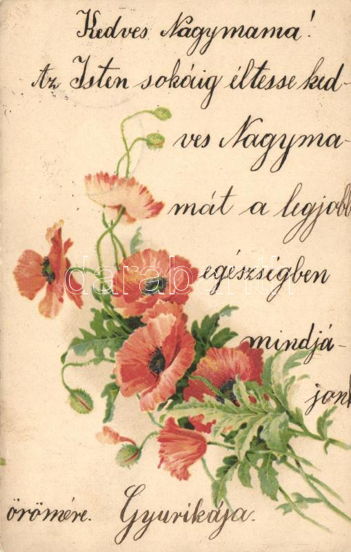 1899 Red poppy flower, litho (EK)