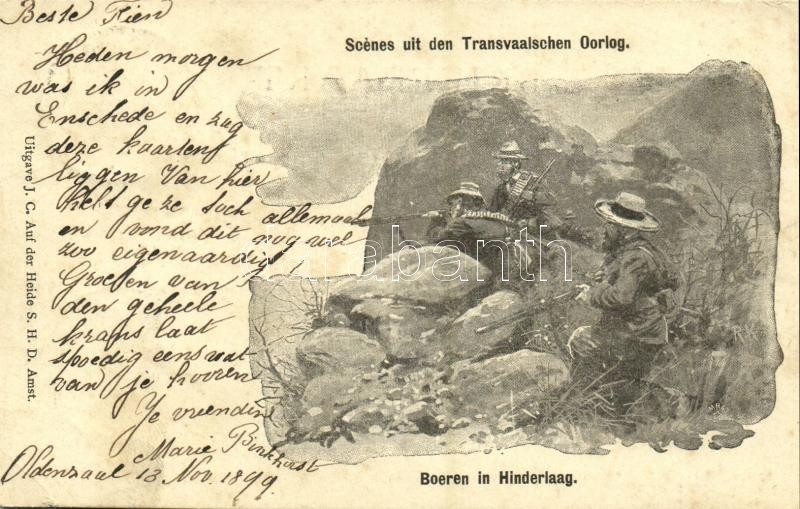 1899 Scenes uit den Transvaalschen Oorlog, Boeren in Hinderlaag / Scenes from the Transvaal War, Boer ambush (EK)<a href="https://www.darabanth.com/hu/gyorsarveres/417/kategoriak~Kepeslapok/Katonai~1500034/1899-Scenes-uit-den-Transvaalschen-Oorlog-B