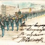 1899 (Vorläufer) Gruss aus… Dombóvár / Austro-Hungarian K.u.K. military art postcard, soldiers marching. Art Nouveau, litho (r)<a href="https://www.darabanth.com/hu/gyorsarveres/415/kategoriak~Kepeslapok/Katonai~1000067/1899-Vorlaufer-Gruss-aus-Do